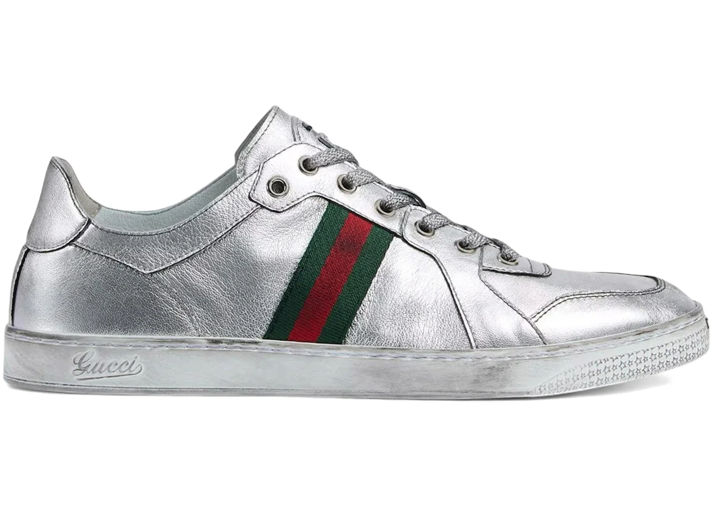 Gucci Stretch Low-Top Sneaker Metallic Silver Leather