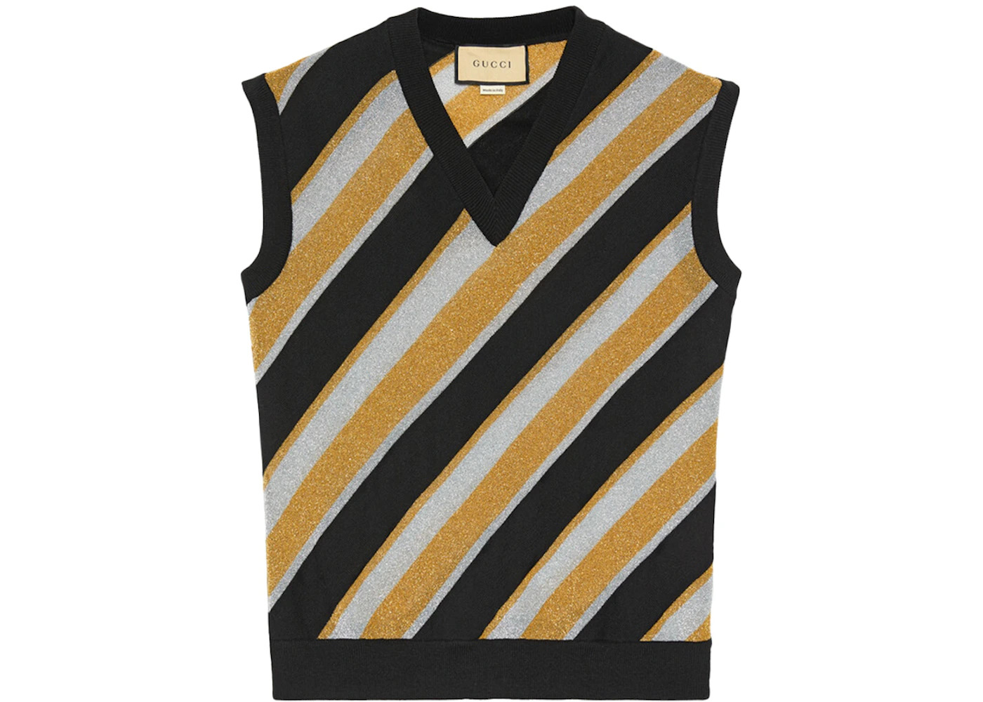 Gucci Striped Intarsia Knit Vest Black/Brown/Off-white