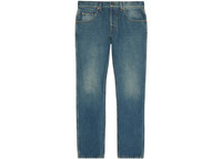 Gucci Tapered Fit Washed Marbled Denim Jeans Stonewashed Blue