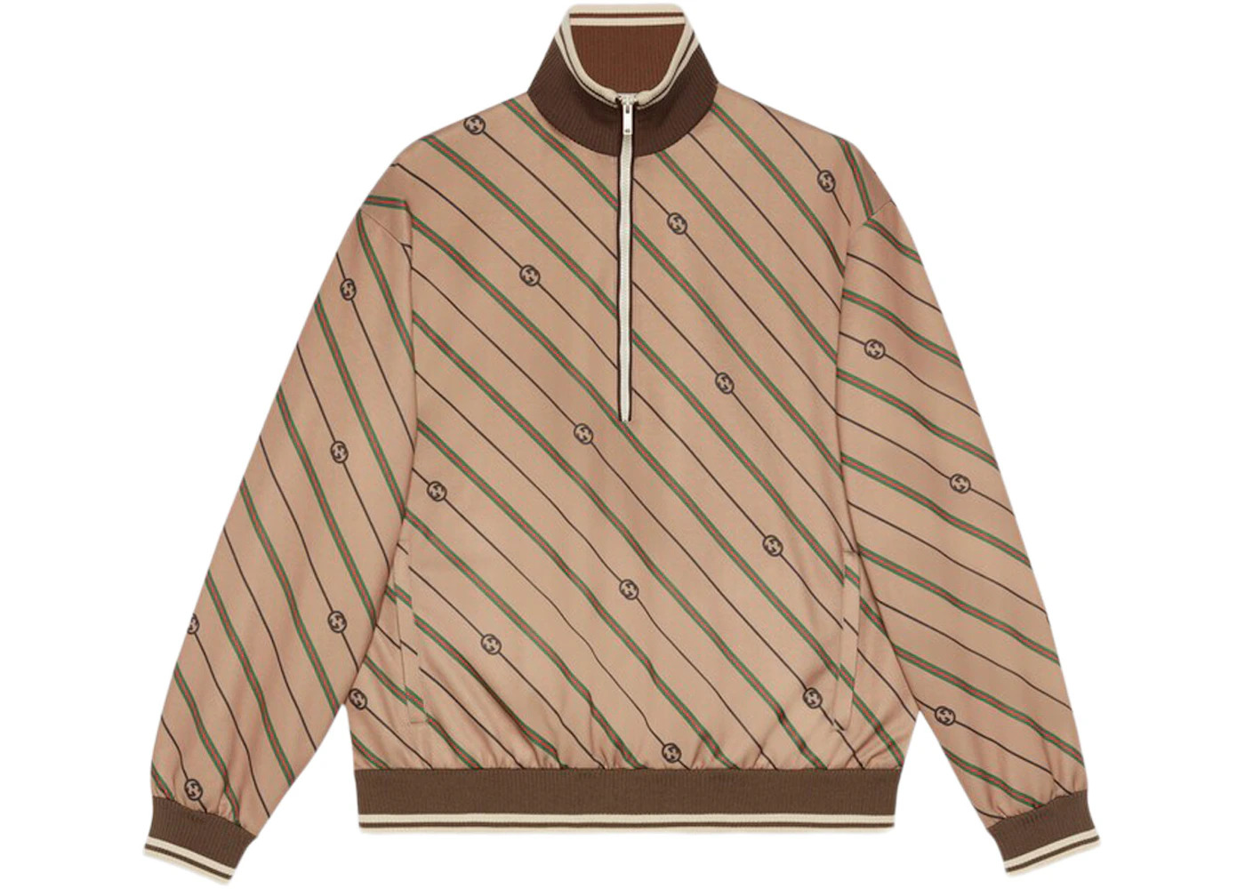 Gucci Twill GG Stripe Knit Half-Zip Jacket Beige/Brown