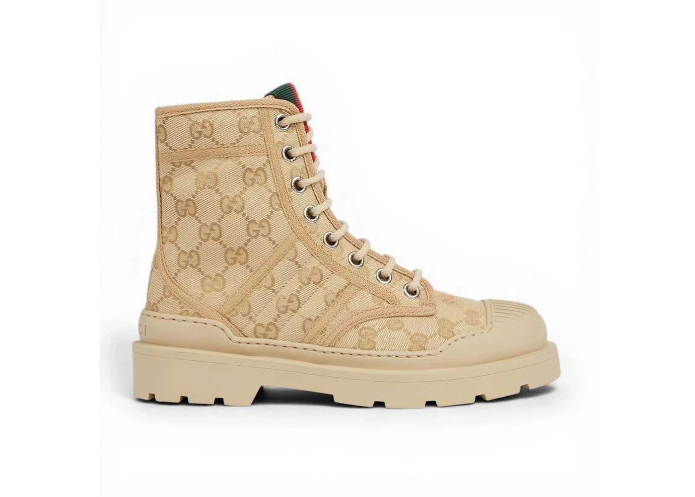 Gucci Walker Combat Boot Beige Brown GG Canvas (Women's)