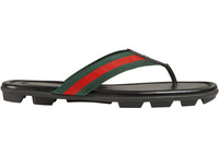 Gucci Web and Leather Thong Sandal Black Leather