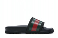 The Gucci Web Slide Sandal Black is one of the Gucci’s popular slides that appears in Black, Green and Red color schemes. The Gucci Web Slide Sandal Black features a slip-on style that makes it easy to wear and remove. The Sandal’s design also features a Gucci logo on the footbed displayed elegantly and discreetly and the equestrian heritage-inspired green and red Web stripe detail on the strap. To complete the design is the cushioned footbed to enhance comfort during wear and the treaded outsole for traction and gripping. The Gucci Web Slide Sandal Black joined the market on January 1st, 2019 at a retail price of $210. - Style 429469 GIB10 1098 - Colorway Black/Green-Red - Retail Price 210 - Release Date 2019-01-01 - Featured false