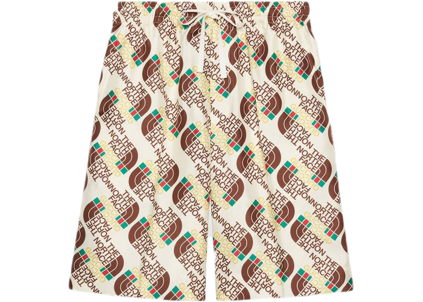 Gucci x The North Face Web Print Silk Shorts Ivory/Brown/Green