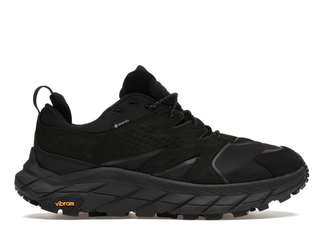 Hoka One One Anacapa Low Gore Tex Black is a low-top model, meaning that for most wearers, it hits right at the bottom of the ankle. This all-black model features extra cushioning and grip on the sole, making it a convenient option for wearers that are particularly active. Whether you’re embarking on a long walk or exercising, the Hoka One Anacapa Gore Tex Black will help support your feet. Even on more rugged terrain, the tread will help prevent you from slipping. Released in May of 2022, the Hoka One One Anacapa Low Gore Tex Black had an initial starting price of $140. - Style 1122017-BBLC - Colorway Black/Black - Retail Price 155 - Release Date 2021-07-01 - Featured false