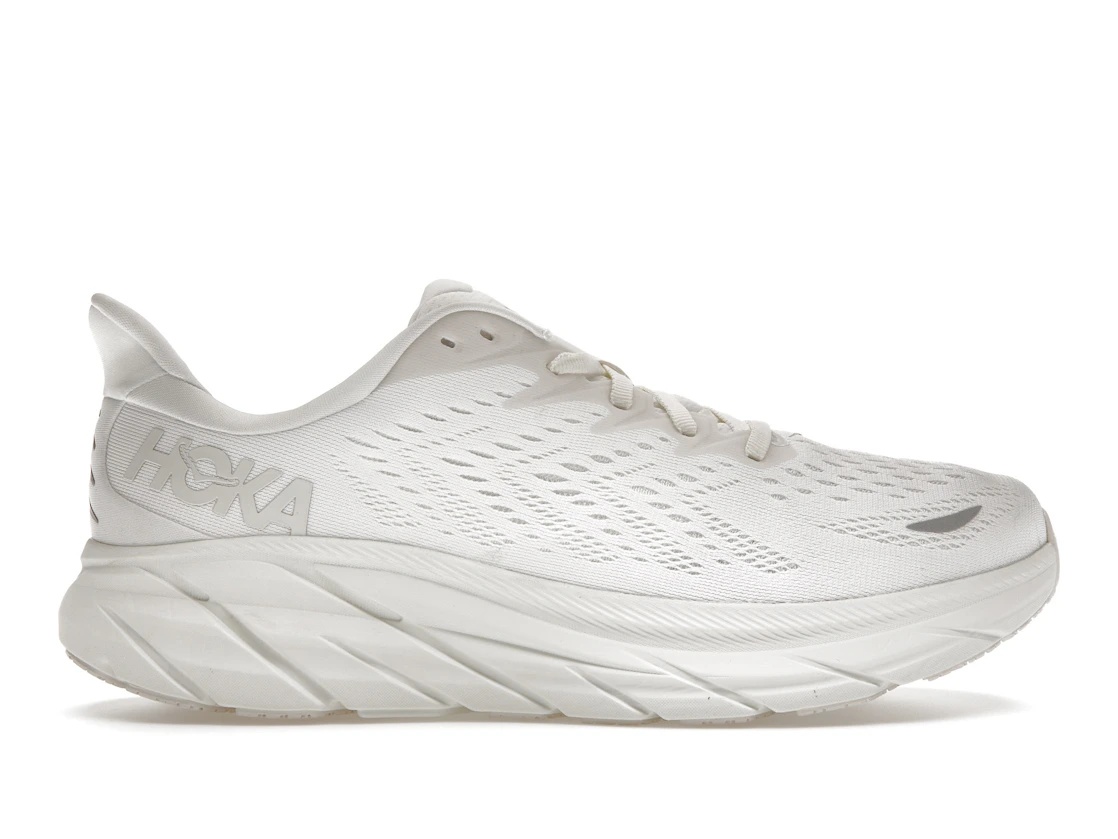 The Hoka One One Clifton 8 White represents an achievement in contemporary footwear design, showcasing a sleek outline and an updated engineered mesh upper. The Hoka One One Clifton 8 White’s allure lies in its uncomplicated nature, characterized by a pristine white color scheme that emanates sophistication and refinement. Engineered with a breathable mesh upper, this shoe is exceptionally lightweight, highly ventilated, and resilient, catering to athletes' demands for various workouts. Further elevating its design are its flat-waisted geometry and durable, high-abrasion rubber. The Clifton 8 boasts a neutral, well-balanced cushioning system, making it optimal for daily running and walking. Weighing just 8.9 oz, it stands as one of the lighter choices in its class. With a heel-to-toe drop of 5 mm, it ensures a stable and comfortable experience. The standout characteristic of the Hoka One One Clifton 8 White, we think, lies in its new, light midsole foam. This innovative element not only delivers a soft and cushioned impact but also provides a responsive energy return with each footstep. The runner debuted for $130 on March 7, 2022. - Style 1119393-WWH - Colorway White/White - Retail Price 130 - Release Date 2022-03-07 - Featured false