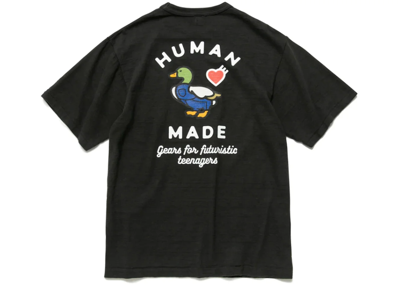Human Made classic round body cotton pocket t-shirt with heart logo embroidery and back print. - Season SS22 - Color Black - Style HM23CS025 - Retail Price 70 - Featured false
