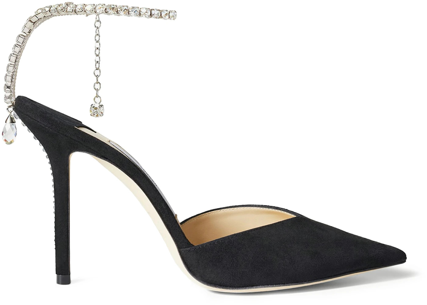 Jimmy Choo Saeda 100mm Pump Crystal Embellished Black Suede