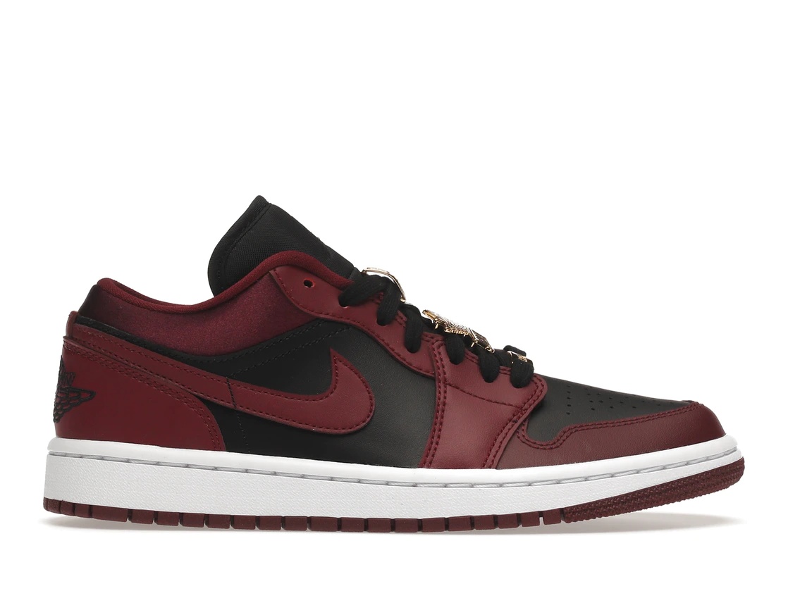 The Air Jordan 1 Low Dark Beetroot Black W is sneaker that is dressed in a mix of dark beetroot, white, and black. The perforated toebox, heel overlays, and midfoot on this Low Air Jordan 1 for Women are Beet Red, as is the Nike Swoosh that runs down the side of the shoe. Black leather makes up the remaining portion of the upper, while white colors the outsole. This sneaker also has a lacing system and AIR unit incorporated in the soles. The Air Jordan 1 Low Dark Beetroot Black W was made available in the market on 29th November 2020 with a retail price of $105. - Style DB6491-600 - Colorway Dark Beetroot/Black-White - Retail Price 105 - Release Date 2020-11-29 - Included Accessories 2X Gold ''Women'' Lace Dubrae, 2X Gold ''Jordan'' Lace Dubrae, 2X Gold Wings Lace Dubrae, 2X Gold ''23'' Lace Dubrae - Featured false