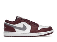 The Air Jordan 1 Low White Bordeaux was made available as a part of a special edition collection in a three-tone pattern. This low-top sneaker features an all-leather upper section with a white base and bordeaux overlays. The bordeaux tone is also highlighted in other parts of the sneaker, including the lining, laces, and outsole. A gray Swoosh is on the laterals and medials, and embroidered "Air Jordan Wings" logo are displayed on the heel. Additional features are a perforated toe box and a Jumpman logo on the tongue and insole. The rubber outsole has a linear pattern for traction. The Air Jordan 1 Low White Bordeaux was released on August 1st, 2022. Initially, it retailed at $100. - Style 553558-615 - Colorway White/Bordeaux/Grey - Retail Price 100 - Release Date 2022-08-01 - Featured false