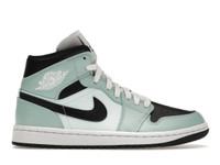 The Air Jordan 1 Mid Aqua Blue Tint (W) arrives in a light dew, black-teal tint-white color scheme. The Jordan 1 Mid Aqua Blue Tint (W) has an upper that is made from synthetic leather and nubuck for long-lasting and comfortable wear. The sneaker's midsole features cushioning foam for responsiveness and support. The shoe's rubber outsole is durable and slip-resistant, while the cushioned tongue and collar offer added comfort. The sneaker includes Nike Swooshes on the lateral sides, Jumpman on the tongue, and an "AIR JORDAN" logo on one side. The women’s rendition of the Air Jordan 1 Mid Aqua Blue Tint (W) was released on June 7th, 2021, for a retail price of $110. - Style BQ6472-300 - Colorway Light Dew/Black-Teal Tint-White - Retail Price 110 - Release Date 2021-06-07 - Featured false