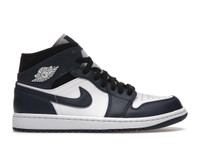 The Jordan 1 Mid Armory Navy features a white leather upper with dark navy overlays and Swooshes. At the ankle, black leather collars add a subtle contrast to the overlays. A Jordan Wings logo at the ankle and Jumpman woven label on the tongue complete the design. The Jordan 1 Mid Armory Navy release in 2022 and retail for $115. - Style 554724-411 - Colorway Armory Navy/White-Black - Retail Price 115 - Release Date 2022-03-29 - Featured false