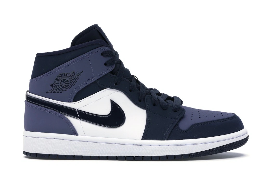 The Jordan 1 Mid Obsidian Sanded Purple features an Obsidian, Sanded Purple, and white leather and nubuck upper. From there, a black Nike "Swoosh" done in nubuck comes together with other branding that includes the "Jumpman" and "Air Jordan" logos to complete the design. The Jordan 1 Mid Obsidian Sanded Purple released in September of 2019 and retailed for $110. - Style 554724-445 - Colorway Obsidian/Sanded Purple-White - Retail Price 110 - Release Date 2019-09-28 - Featured false