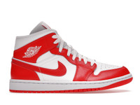 The women's Air Jordan 1 Mid Syracuse (W) features a White/White/Habanero Red colorway, with the Habanero Red appearing orange, much like the school color of the University of Syracuse. The upper of the sneaker is white leather with perforations in the toebox. The leather overlays and Swoosh are orange. The outsole is orange with a concentric-circles pattern in the rubber. The midsole and laces are white. An orange Jumpman logo appears on the white tongue, and a white Wings logo is on the orange collar. There is visible stitching throughout the shoe. This women’s shoe, the Air Jordan 1 Mid Syracuse (W), was released on August 26, 2021, at a retail price of $120. - Style BQ6472-116 - Colorway White/White/Habanero Red - Retail Price 120 - Release Date 2021-08-26 - Featured false