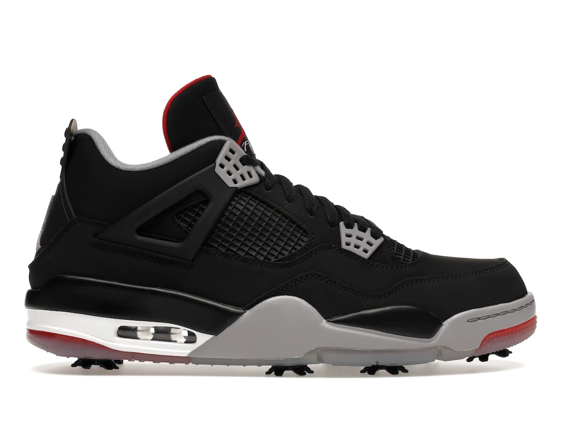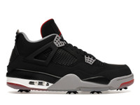 First appearing on PGA Tour pro Pat Perez back in July of 2021, the Jordan 4 Golf Bred offers tribute to one of the most renowned OG Air Jordan 4 colorways to ever release, the Air Jordan 4 Bred. Its upper practically mimics the original design, not including the classic Nike Air logo heel tab where a Jumpman logo is featured instead. Tailoring the design for the greens, spikes on the outsole offer stability and traction for that perfect swing. The Air Jordan 4 Golf Bred released in December of 2021 and retailed for $220. - Style CU9981-002 - Colorway Black/Fire Red-Cement Grey-White - Retail Price 220 - Release Date 2021-12-21 - Featured false