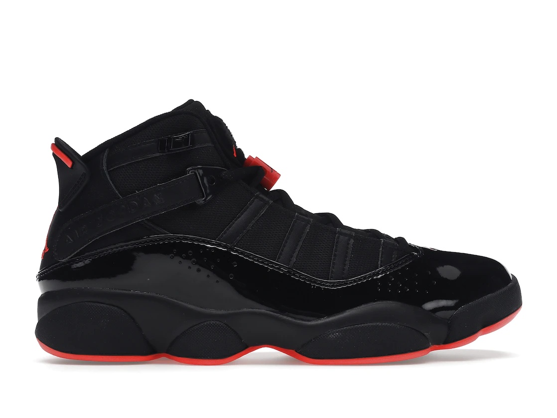 The Jordan 6 Rings Black Infrared is a hybrid silhouette, borrowing styles from Jordan 6 through 12. The Jordan 6 Rings arrive in a black and infrared colorway encompassing the various elements in its build. The Jordan 6 Rings are predominantly black, covering the leather, shiny patent leather, and mesh. With the need to stand out from the AJ6, accents of infrared appear throughout the 6 Rings from the rubber outsole to the detailing. However, the embellishments, such as the Jumpman logo on the toe box and the tongue, take on a brighter red hue. While the Jordan 6 Rings Black Infrared is predominantly a lace-up sneaker, an ankle strip bearing Air Jordan inspiration is attached to the black eyestays. To wrap up the design, the Air Jordans have a Zoom Air unit that delivers a responsive feel underfoot. What is the standout feature of the Jordan 6 Rings Black Infrared? Of course, as our experts acknowledge, it is the infrared accents that punctuate the black leather upper. The resulting colorway creates an attention-grabbing style, especially when paired with any Essentials merchandise. The shoe was released on September 1, 2022, retailing for $170. - Style 322992-066 - Colorway Black/Black/Infrared 23 - Retail Price 170 - Release Date 2022-09-01 - Featured false