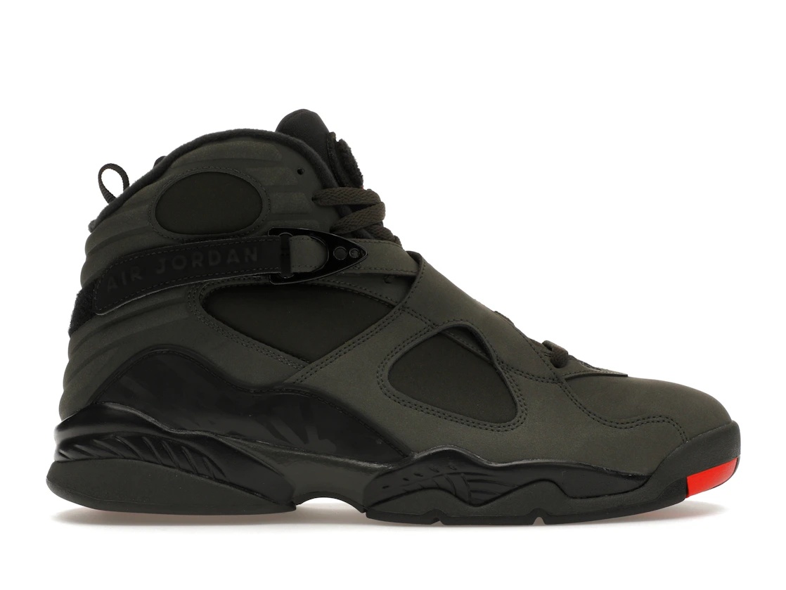 The Air Jordan 8 Retro Take Flight Undefeated was released in part of a collaboration between the Air Jordan Brand and streetwear boutique Undefeated. This shoe features a leather upper and rubber sole with a predominantly sequoia color scheme. On the design front, the Air Jordan 8 has distinctive crisscross straps on top of the laces as well as bumpy lines running around the heel area. It also has subtle orange accents on the sole and tongue that provide a touch of color. Additionally, the shoe features Jordan branding in the form of the Jumpman on the tongue, the number 23 on the top strap and the text Air Jordan on the straps that go around the ankle. The Air Jordan 8 Retro Take Flight Undefeated was released for retail priced at $190 on January 28, 2017. - Style 305381-305 - Colorway Sequoia/Black-Wolf Grey-Max Orange - Retail Price 190 - Release Date 2017-01-28 - Featured false