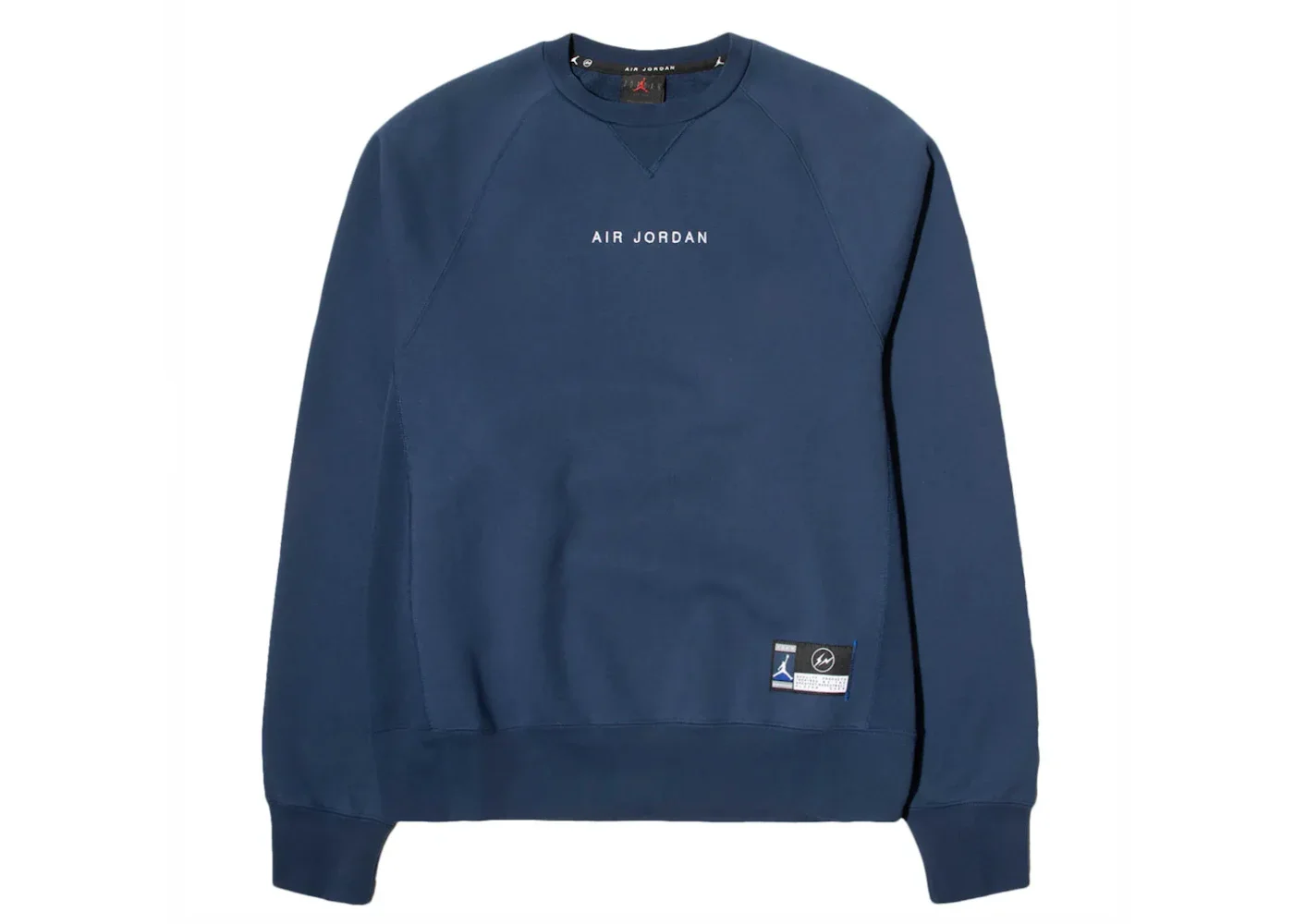 Jordan Brand teams up with Hiroshi Fujiwara's label to create the Jordan x Fragment Crewneck Sweatshirt in Navy/Sport Royal/White. According to Fragment founder Fujiwara, this line of clothing takes some cues from the vintage fashions of personal education classes of times past. Understated "Air Jordan" lettering adorns the top front of the crewneck, and a similar logo is found at the bottom. While the top may look plain on the front, the back of the Jordan x Fragment sweatshirt includes a giant Jumpman graphic under a lighter shade of Sport Royal to give off colorful vibes that mesh well with each other. The Jordan x Fragment Crewneck Sweatshirt navy/Sport Royal/white released in September 2020 and retailed for $130. - Season FW20 - Color Navy/Sport Royal/White - Release Date 2020-09-17 - Retail Price 130 - Featured false