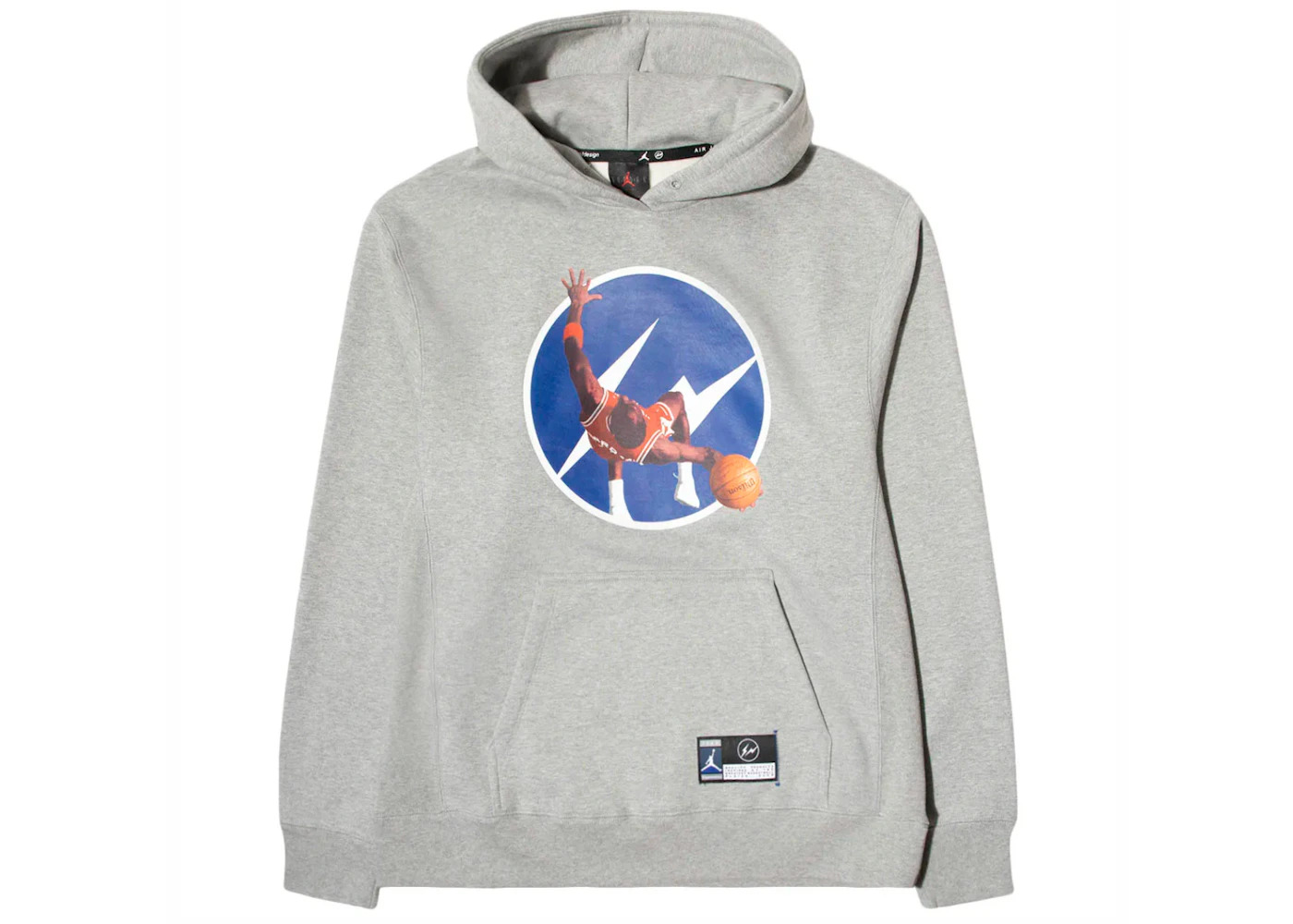 The Jordan x Fragment Image Pullover Hoodie Dark Grey Heather features a pullover style with a hood for added comfort and warmth. The hoodie is crafted from high-quality polyester, ensuring a soft and comfortable feel. The fleece fabric type provides warmth and coziness, making it suitable for various seasons. The hoodie is designed with a relaxed and comfortable Loose Fit, catering to a range of body types and ensuring ease of movement. It is available in a regular size range that accommodates chest measurements from 37.5 to 41 inches, waist measurements from 32 to 35 inches, and hip measurements from 37.5 to 41 inches. The height range of 5'7" to 6'0" ensures a suitable length for most wearers. What our experts at StockX love about this Jordan x Fragment Image Pullover hoodie is the graphic print on the chest. It combines Fragment Design's iconic lightning logo with an image of Michael Jordan in mid-flight, capturing his legendary basketball prowess. Released on September 17th, 2020, this Jordan x Fragment Image Pullover Hoodie Dark Grey Heather retailed at $110. - Season FW20 - Color Dark Grey Heather - Release Date 2020-09-17 - Retail Price 110 - Featured false