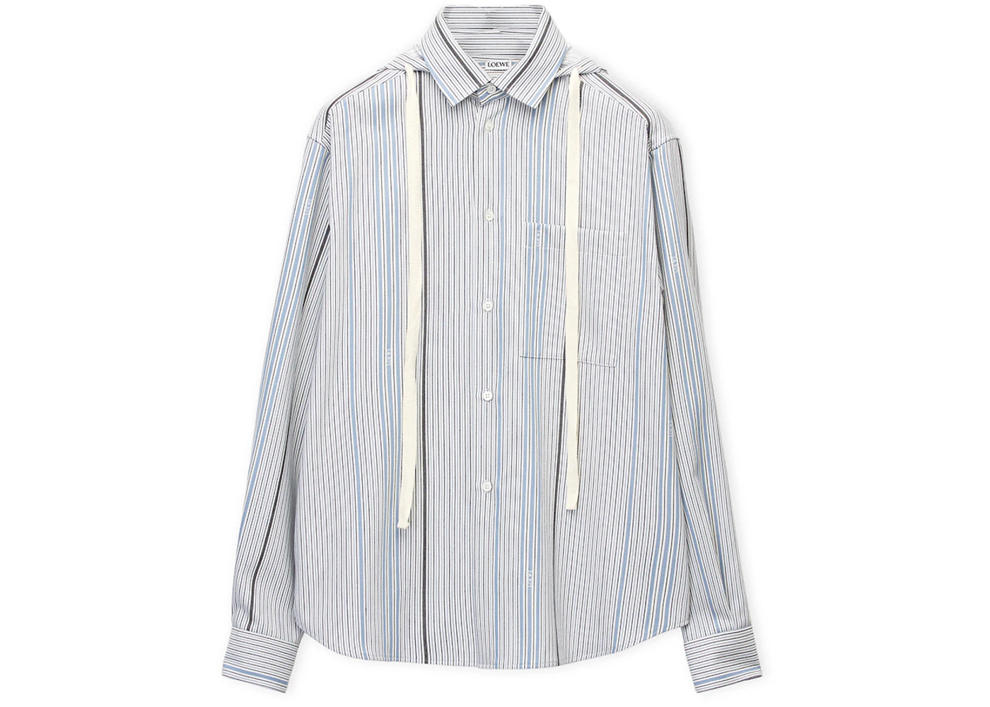 LOEWE Jacquard Hooded Wool And Cotton Shirt White/Light Blue