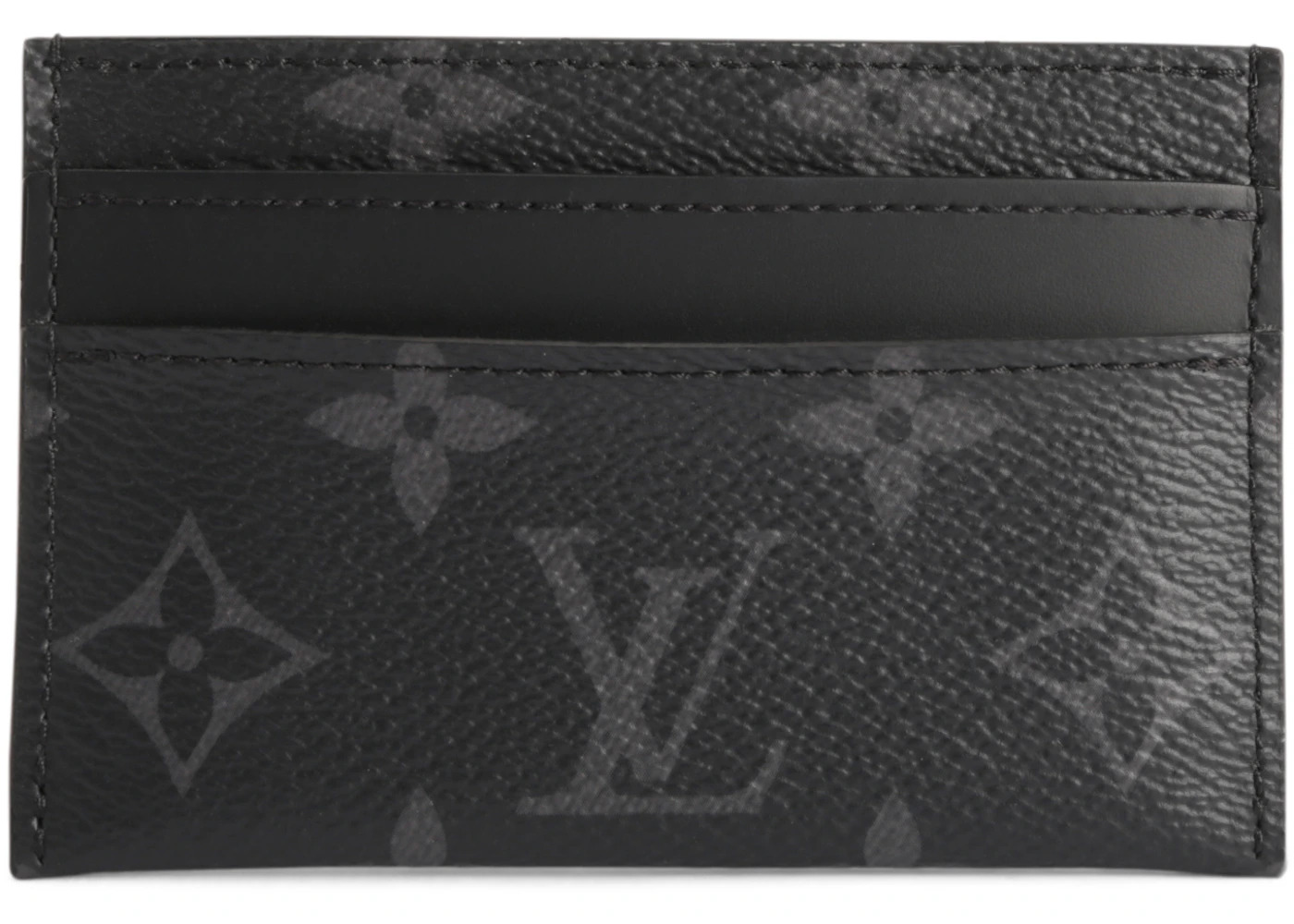 The Louis Vuitton Card Holder Porte Cartes Double Monogram Eclipse Black Gray comes in a combination of two main color schemes - gray and black. This Double Monogram Eclipse Card Holder by the French luxury company is made from the classic signature monogram canvas of Louis Vuitton in two tones. On each side of this wallet’s main compartment there are two card slots. The size of this wallet is 2.75 inches high and 4.25 inches long. The Louis Vuitton Card Holder Porte Cartes Double Monogram Eclipse Black Gray initially hit the market in June 2020 at a suggested retail price of $295.Please Note: Dust bag and box are not required for this accessory. - Dimensions 2.7H 4.3W 0.2D - Material Canvas - Retail Price 295 - Color Black/Grey - Style TS2185 - Base Model Card Holder - Base Model Variety Porte Cartes Double - Color Generic Black/Grey - Depth 0.2 - Featured false - Height 2.7 - Interior Color Black - Pattern Monogram - Pattern Variant Eclipse - Styles Card Case - Width 4.3