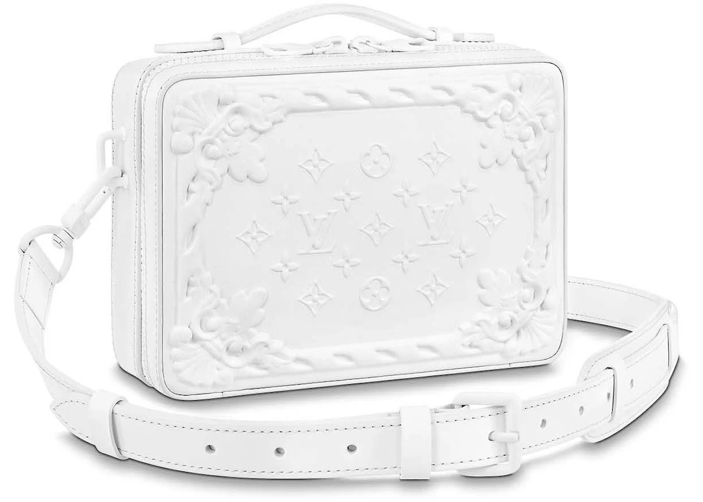 Louis Vuitton Handle Soft Trunk Optic White, Style Number M21833. This product released for 3750 USD, made from Calfskin Leather and accompanied with Tone-on-tone Hardware. Please Note: This item comes with a dust bag, the box is not required.Louis Vuitton no longer utilizes visible date codes for handbags and accessories produced in 2021 and going forward. - Dimensions 5.9H 8.5W 2.8D Strap 22.8 - Material Calfskin Leather - Retail Price 3750 - Color Optic White - Hardware Tone-on-tone - Release Date 2023-01-24 - Style M21833 - Included Accessories Strap, Dust Bag - Season SS23 - Base Model Handle Soft - Base Model Variety Trunk - Color Generic White - Depth 2.8 - Featured false - Height 5.9 - Strap Drop 22.8 - Styles Crossbody - Width 8.5