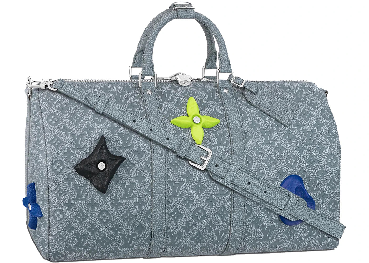 Louis Vuitton Keepall 50 Granite, Style Number M20901. Please Note: This item comes with a dust bag, the box is not required. - Dimensions 11.4H 19.7W 9.1D - Material Embossed Cowhide Leather - Retail Price 4900 - Color Granite - Hardware Silver-tone - Release Date 2022-07-14 - Style M20901 - Included Accessories Strap, Lock, Key, Lock Cover, Luggage Tag, Handle Strap, Dust Bag - Season FW22 - Base Model Keepall - Base Model Variety 50 - Color Generic Gray - Depth 9.1 - Featured false - Height 11.4 - Styles Duffle - Width 19.7