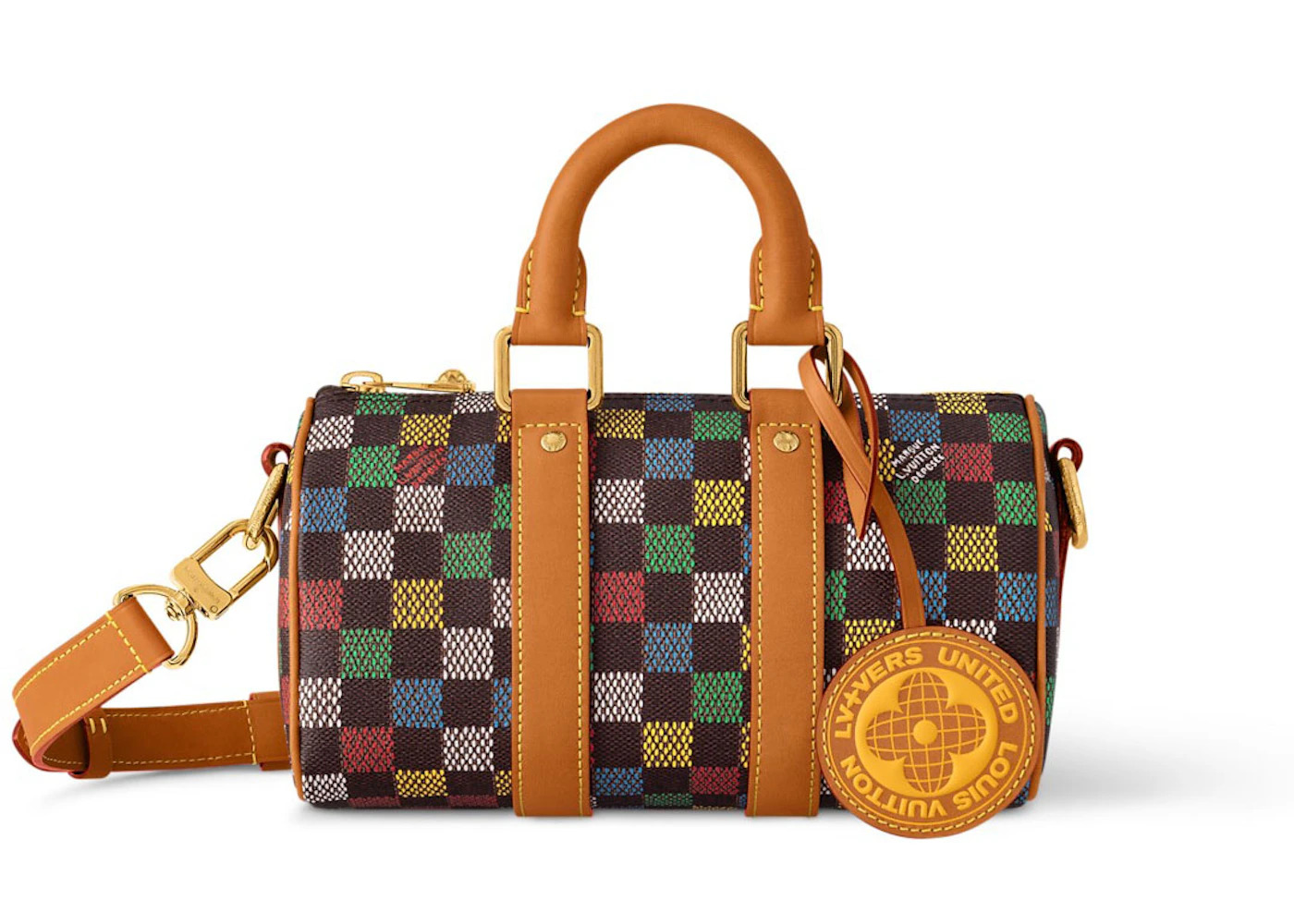 Please Note: This item comes with a dust bag, the box is not required. - Dimensions 5.9H 9.8W 4.3D Strap 24.8 - Material Coated Canvas - Retail Price 2710 - Color LV Vers Damier Ebene Multicolor - Size 25 - Style N00148 - Season SS25 - Base Model Keepall - Base Model Variety Bandouliere - Color Generic Multicolor - Depth 4.3 - Featured false - Height 5.9 - Requester Rachel M - Strap Drop 24.8 - Styles Top Handle - Uploaded By ML - Width 9.8