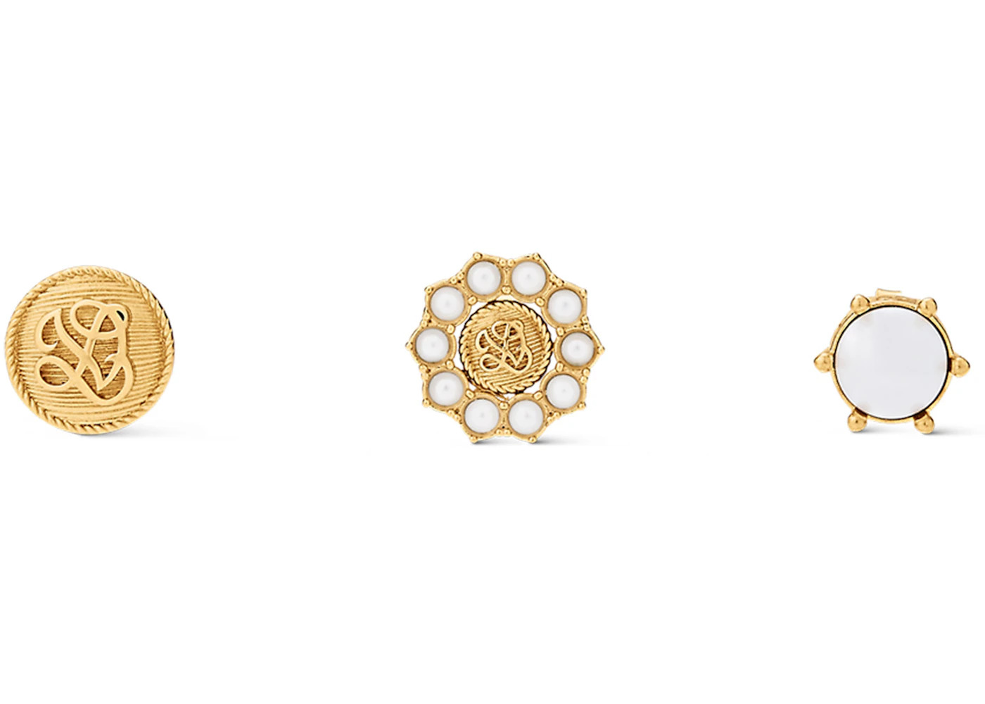 Please Note: Dust bag and box are not required for this accessory. - Material Brass/Glass Pearls - Retail Price 555 - Color Gold - Hardware Gold-tone - Release Date 2024-01-04 - Style M01753 - Season SS24 - Base Model LV Dynasty Set of 3 - Base Model Variety Earrings - Color Generic Gold - Featured false - Requester Rachel M - Styles Jewelry - Uploaded By ML