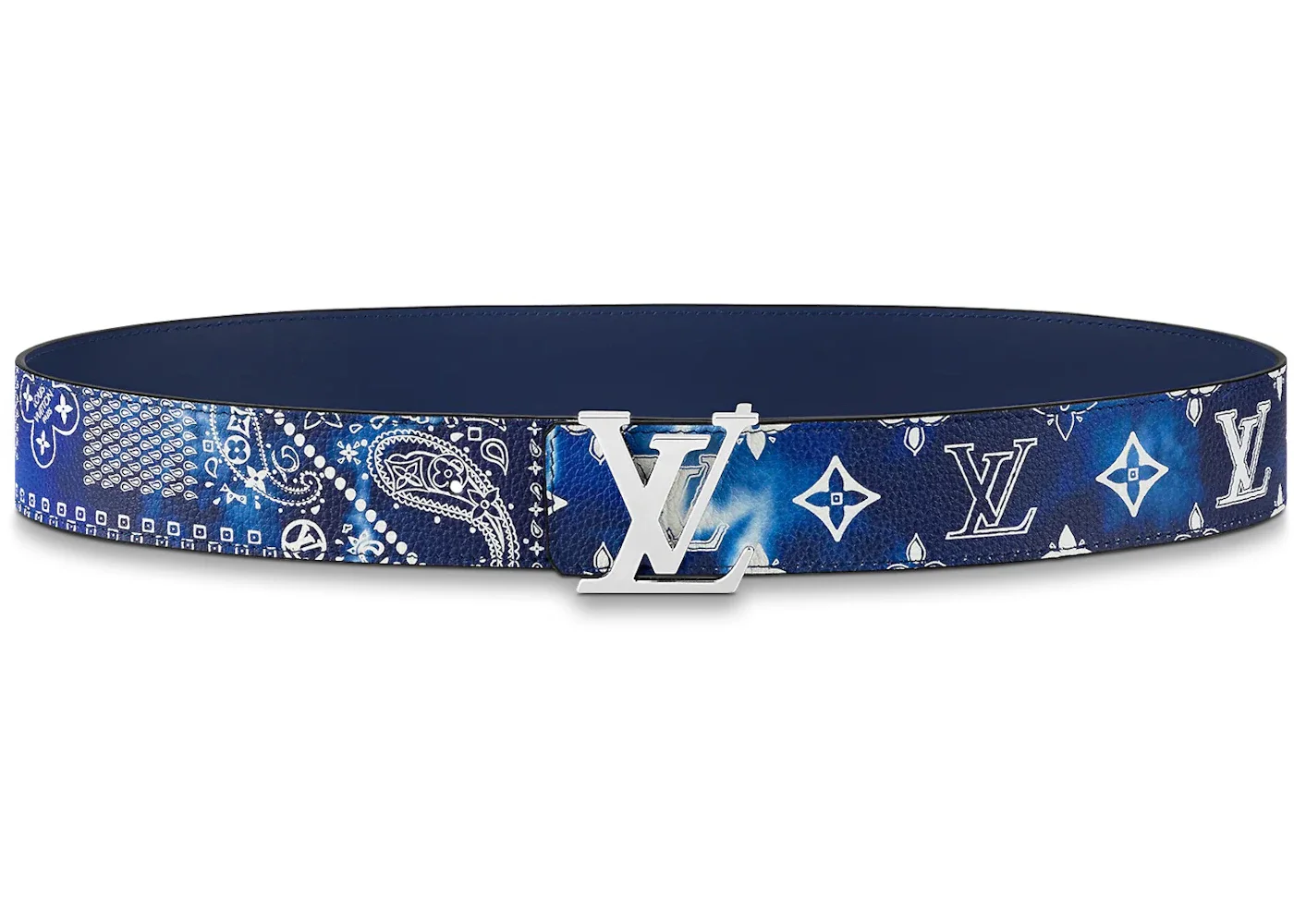 Please Note: Dust bag and box are not required for this accessory. - Dimensions 37.4-15.7W - Material Calfskin Leather - Retail Price 775 - Color Blue - Hardware Silver-tone - Style M0530T - Base Model LV Initials MNG Bandana - Base Model Variety 40MM Reversible Belt - Color Generic Blue - Featured false - Styles Belt - Width 37.4-15.7