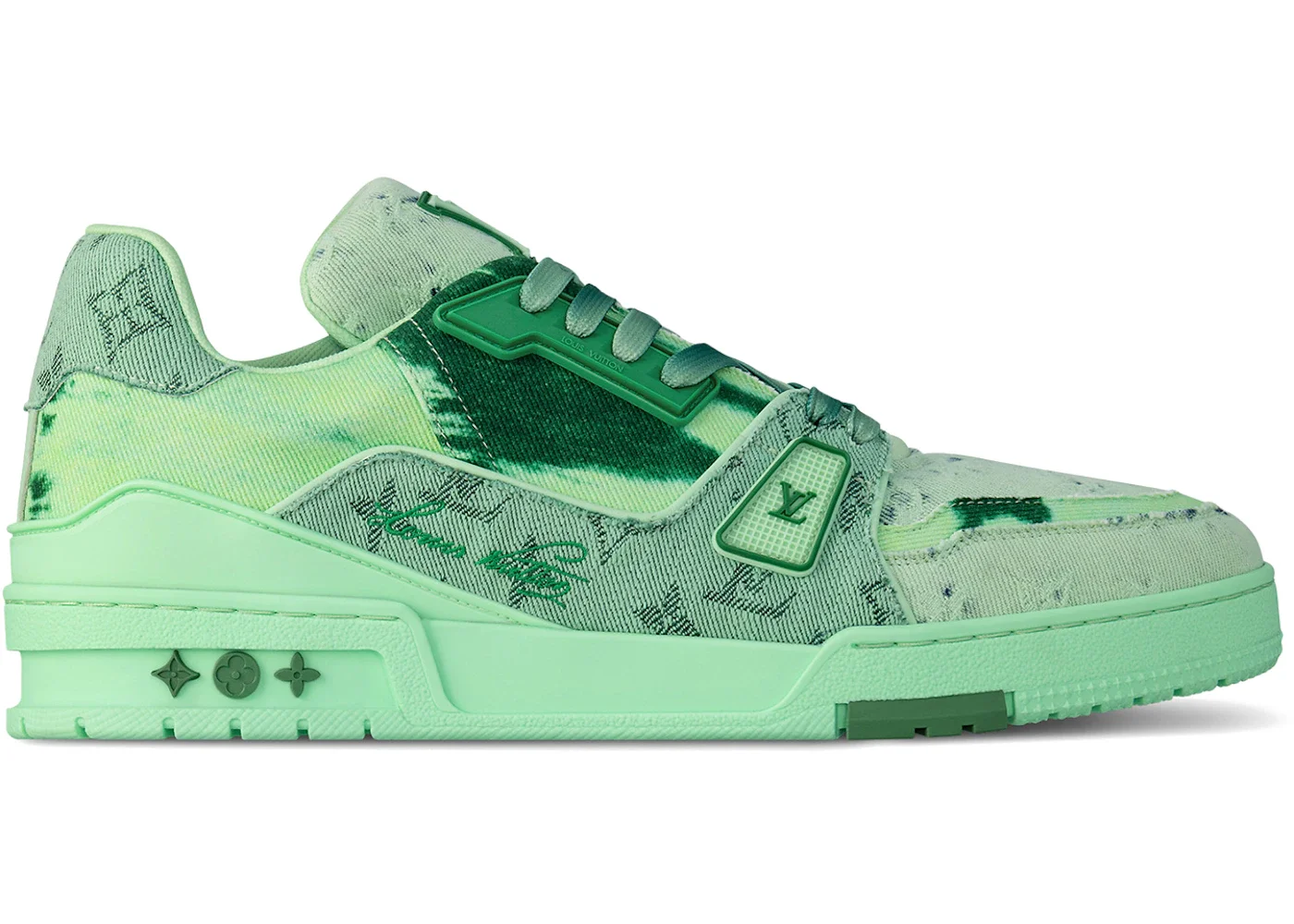 Louis Vuitton LV Trainer Green Bleached Monogram Denim