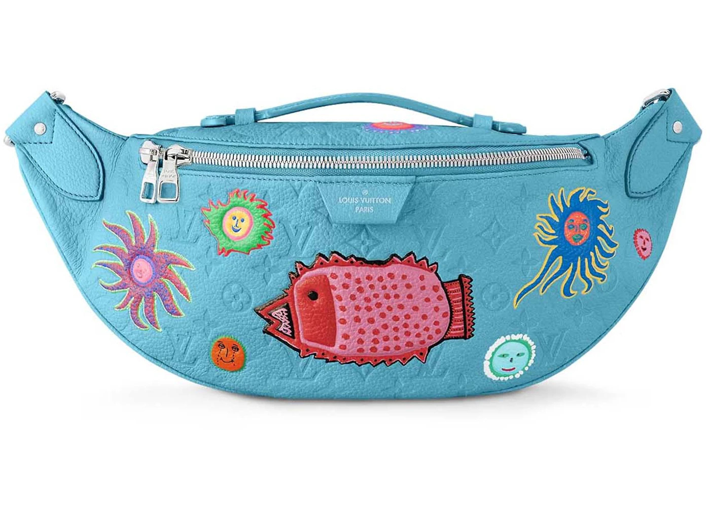Please Note: This item comes with a dust bag, the box is not required. - Dimensions 9.4H 17.3W 2.8D Strap 19.8 - Material Taurillon Monogram Embossed Cowhide Leather with Colorful Face Appliques - Retail Price 3550 - Color Blue - Hardware Palladium-tone - Release Date 2023-03-31 - Style M21715 - Season SS23 - Base Model LV x YK Maxi - Base Model Variety Bumbag - Color Generic Blue - Depth 2.8 - Featured false - Height 9.4 - Strap Drop 19.8 - Styles Waist Bag - Uploaded By ML - Width 17.3