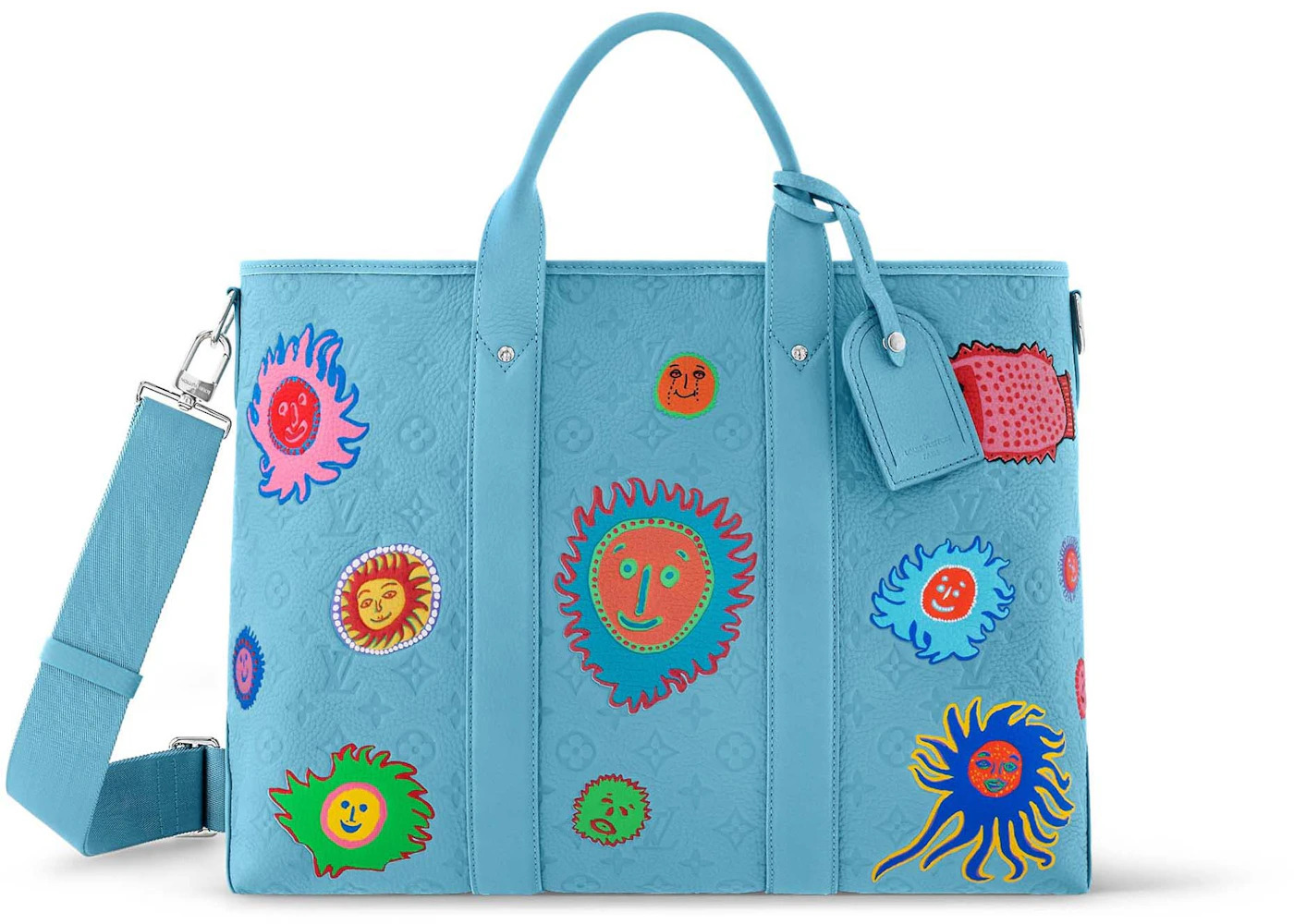 Please Note: This item comes with a dust bag, the box is not required. - Dimensions 13.4H 16.9W 6.9D Strap 29.5 - Material Taurillon Monogram Embossed Cowhide Leather with Colorful Face Appliques - Retail Price 4500 - Color Blue - Hardware Palladium-tone - Release Date 2023-03-31 - Style M21717 - Season SS23 - Base Model LV x YK Weekend - Base Model Variety Tote - Color Generic Blue - Depth 6.9 - Featured false - Height 13.4 - Strap Drop 29.5 - Styles Duffle - Uploaded By ML - Width 16.9