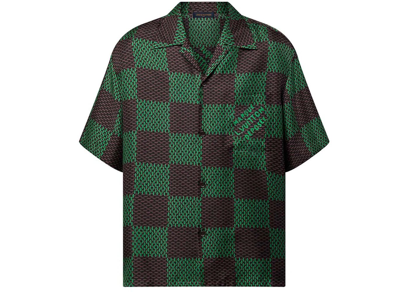 Louis Vuitton Open Collar Short-Sleeved Silk Shirt Jolly Green
