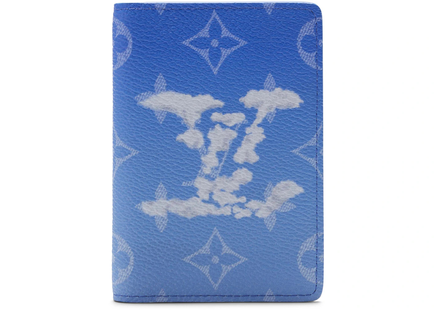 The Louis Vuitton Pocket Organizer Clouds Monogram Blue is made of coated canvas in a blue colorway. This Louis Vuitton Pocket Organizer in Blue features the brand's monogram pattern in faded white and an exterior pocket in the back. On the front of the pocket organizer, the signature interlocking LV is depicted with clouds. Inside, this luxury accessory features three card slots, five interior pockets, and a lining made from leather that has been sustainably processed in a European tannery certified by the Leather Working Group (LWG). The Louis Vuitton Pocket Organizer Clouds Monogram Blue was released in September 2020 for $440 retail.Please Note: Dust bag and box are not required for this accessory. - Dimensions 4.3H 2.9W 0.4D - Material Coated Canvas - Retail Price 440 - Color Blue - Style M69679 - Season FW20 - Base Model Pocket Organizer - Base Model Variety Clouds - Color Generic Blue - Depth 0.4 - Featured false - Height 4.3 - Pattern Monogram - Styles Wallet,Card Holder - Width 2.9