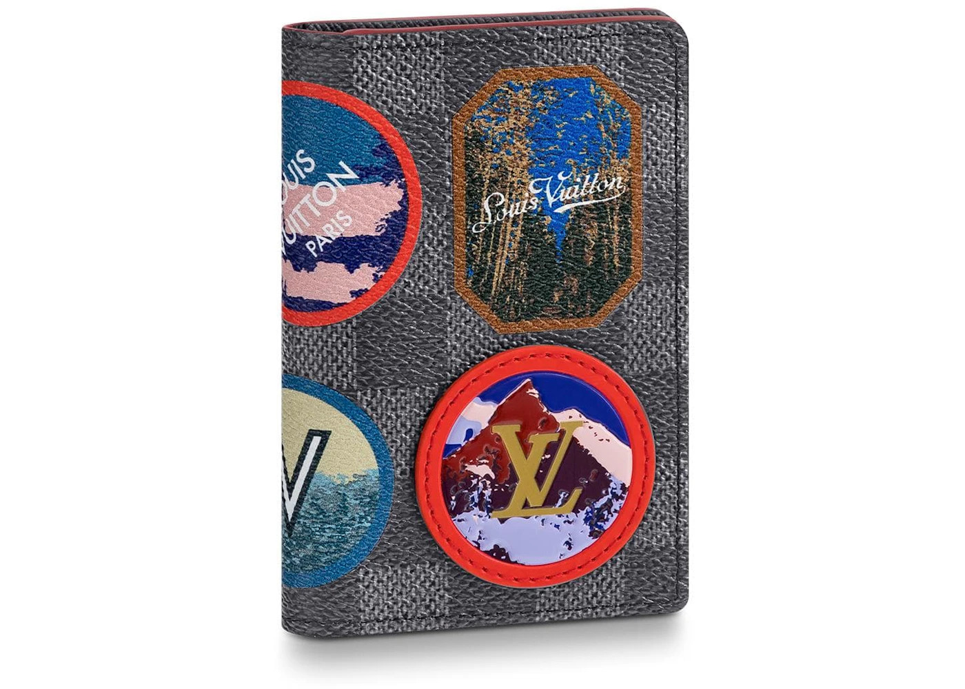 Please Note: Dust bag and box are not required for this accessory. - Dimensions 4.3H 2.9W - Material Coated Canvas - Retail Price 410 - Color Grey - Hardware Silver-tone - Season FW18 - Base Model Pocket Organizer - Color Generic Grey - Exterior Variant Alps Patches - Featured false - Height 4.3 - Interior Color Black Leather/Textile - Pattern Damier Graphite - Styles Card Case - Width 2.9