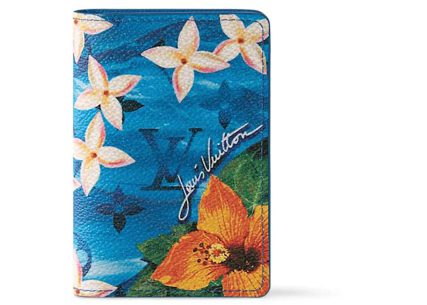 The Louis Vuitton Pocket Organizer Monogram Surfin' Bright Blue is a small and compact wallet. It has three slots for credit cards and five small additional pockets for holding identification. There is also an outside pocket to keep cash or business cards easily accessible. Its stylish exterior is bright blue with a tropical flower motif. The classic "LV" (Louis Vuitton) logo and a signature are also part of the pattern. For durability, this pocket organizer is crafted of coated canvas and trimmed with cowhide leather for added elegance. Our team is excited about the compact size of the Louis Vuitton Pocket Organizer Monogram Surfin' Bright Blue. It measures 3 x 4.4 x 0.4 inches, which makes it easy to carry in your pocket. This Louis Vuitton pocket organizer is part of the Fall/Winter 2024 collection. It was released on May 23, 2024, and retailed for $485. - Dimensions 4.4H 3W 0.4D - Material Canvas - Retail Price 485 - Color Bright Blue - Release Date 2024-05-23 - Style M83557 - Season FW24 - Base Model Pocket Organizer - Color Generic Blue - Depth 0.4 - Featured false - Height 4.4 - Pattern Monogram Surfin' - Requester Rachel M - Styles Wallet - Uploaded By ML - Width 3