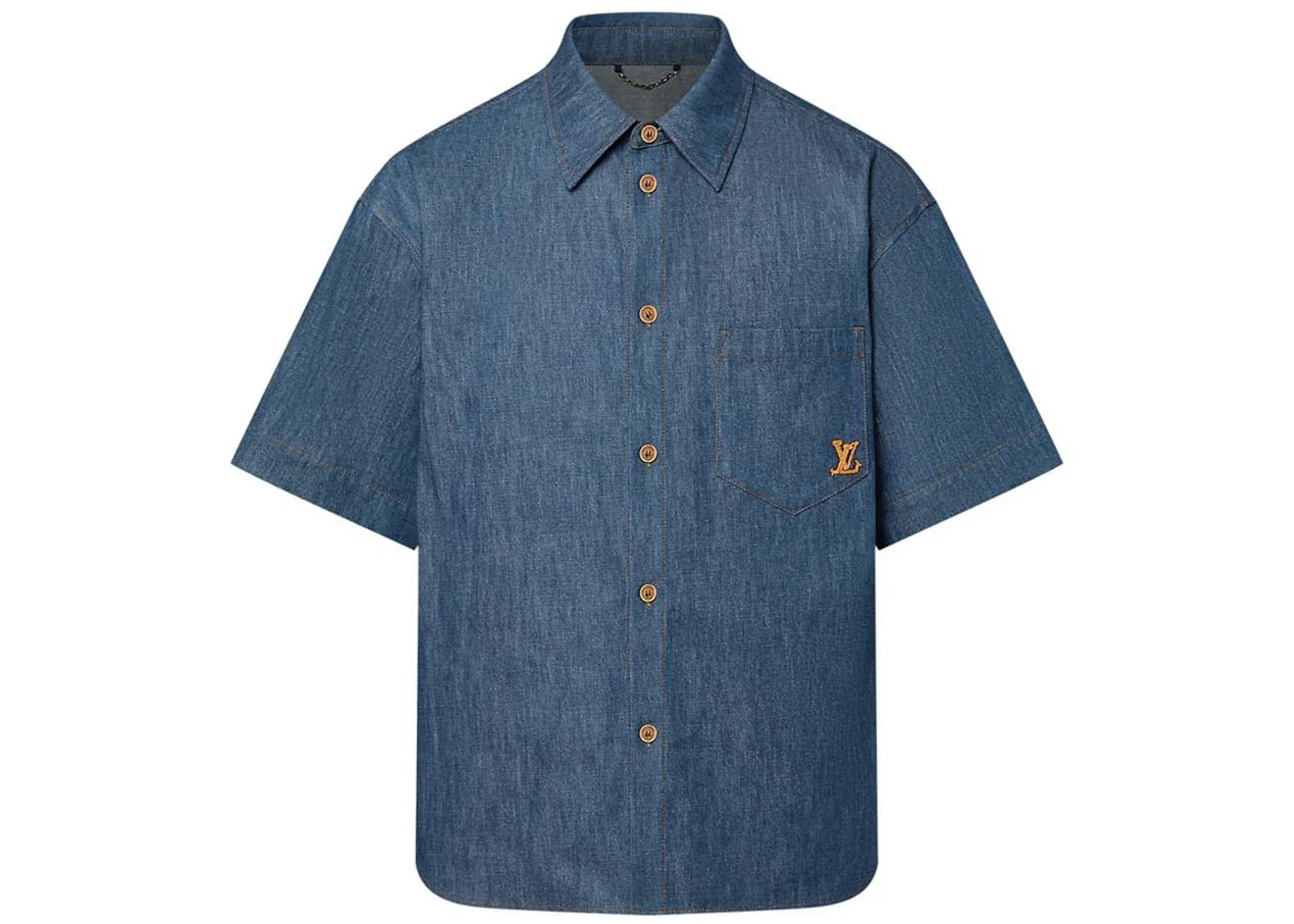 Louis Vuitton Short-Sleeved Cotton Chambray Shirt Indigo