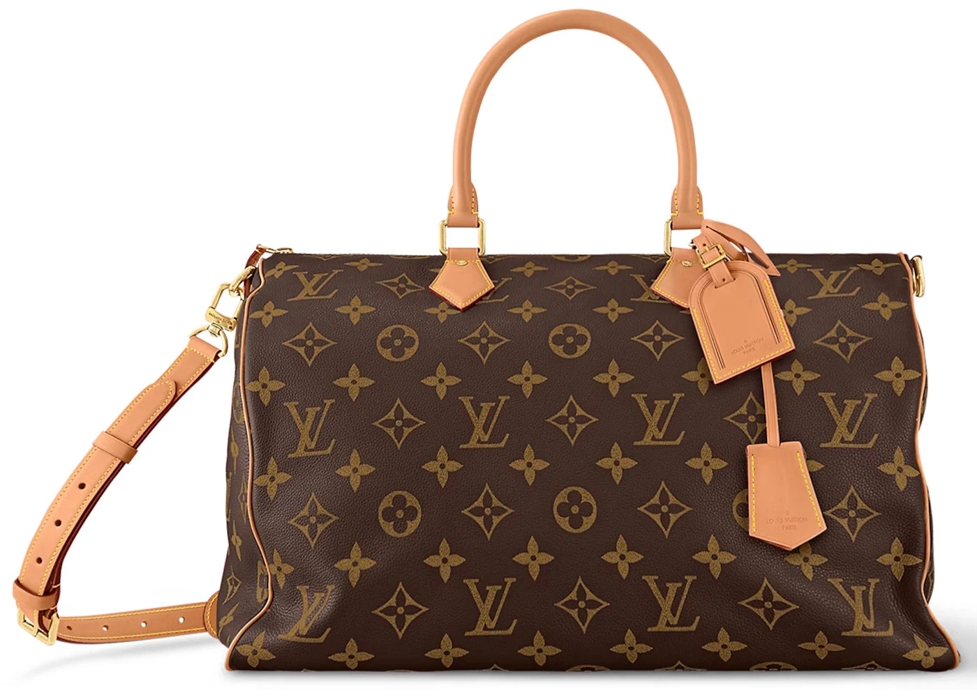 Please Note: This item comes with a special dust bag font color will match the bag, interior pillow included, the box is not required. - Dimensions 12.6H 19.7W 11.4D Strap 21.7 - Material Soft Calfskin - Retail Price 12400 - Color Brown Monogram - Hardware Gold-tone - Release Date 2024-01-04 - Style M46962 - Included Accessories Removable Leather Pouch, Name Tag And Key Bell, Removable Strap, Padlock And Key, Color Matching Dust Bag, Pillow - Season SS24 - Base Model Speedy 50 - Base Model Variety Bandouliere - Color Generic Brown - Depth 11.4 - Featured false - Height 12.6 - Pattern Monogram Leather - Requester Rachel M - Strap Drop 21.7 - Styles Top Handle - Uploaded By ML - Width 19.7