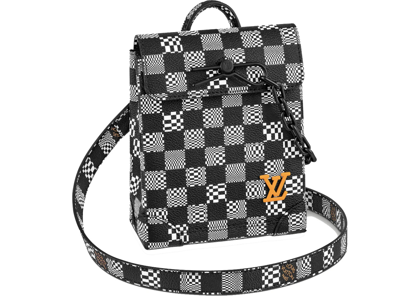Please Note: This item comes with a dust bag, the box is not required. - Dimensions 7.1H 5.9W 3D Strap 19.7 - Material Coated Canvas - Retail Price 2170 - Color Black/White - Hardware Black-tone - Size XS - Style N60453 - Included Accessories Strap, Dust Bag - Season SS21 - Base Model Steamer - Color Generic Black - Depth 3 - Featured false - Height 7.1 - Pattern Damier - Strap Drop 19.7 - Styles Crossbody,Shoulder Bag - Width 5.9