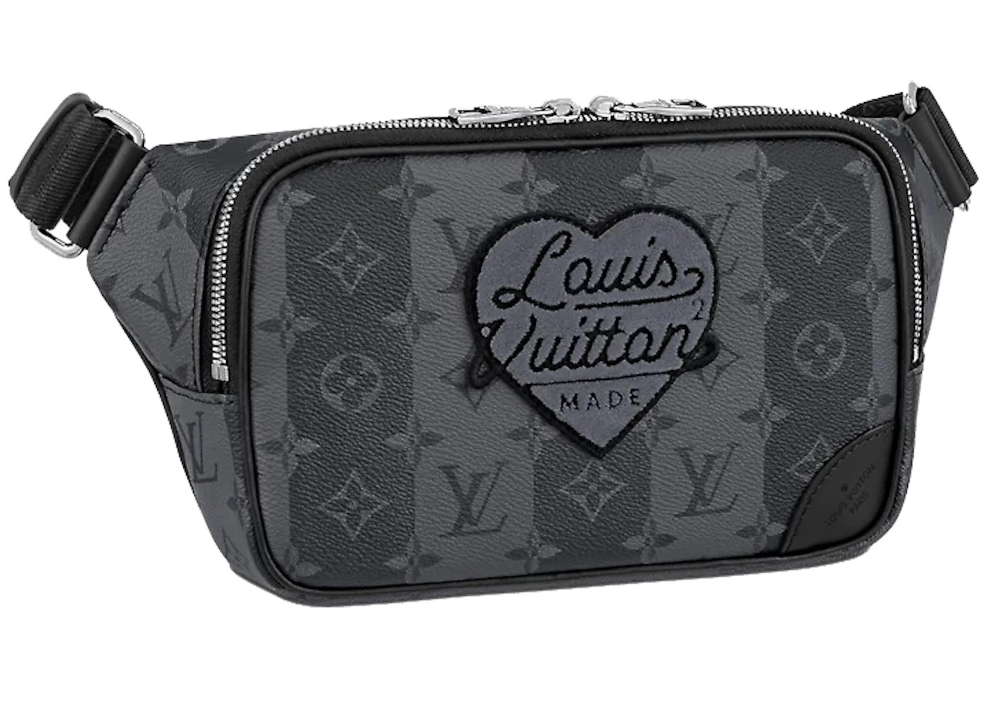Please Note: This item comes with a dust bag, the box is not required. - Dimensions 7.7H 13.4W 3.1D - Material Coated Canvas - Retail Price 2150 - Color Eclipse - Hardware Silver-tone - Style M59338 - Included Accessories Dust Bag - Base Model x Nigo - Base Model Variety Modular Sling Bag - Color Generic Black - Depth 3.1 - Featured false - Height 7.7 - Pattern Variant Monogram Stripes - Styles Waist Bag - Width 13.4