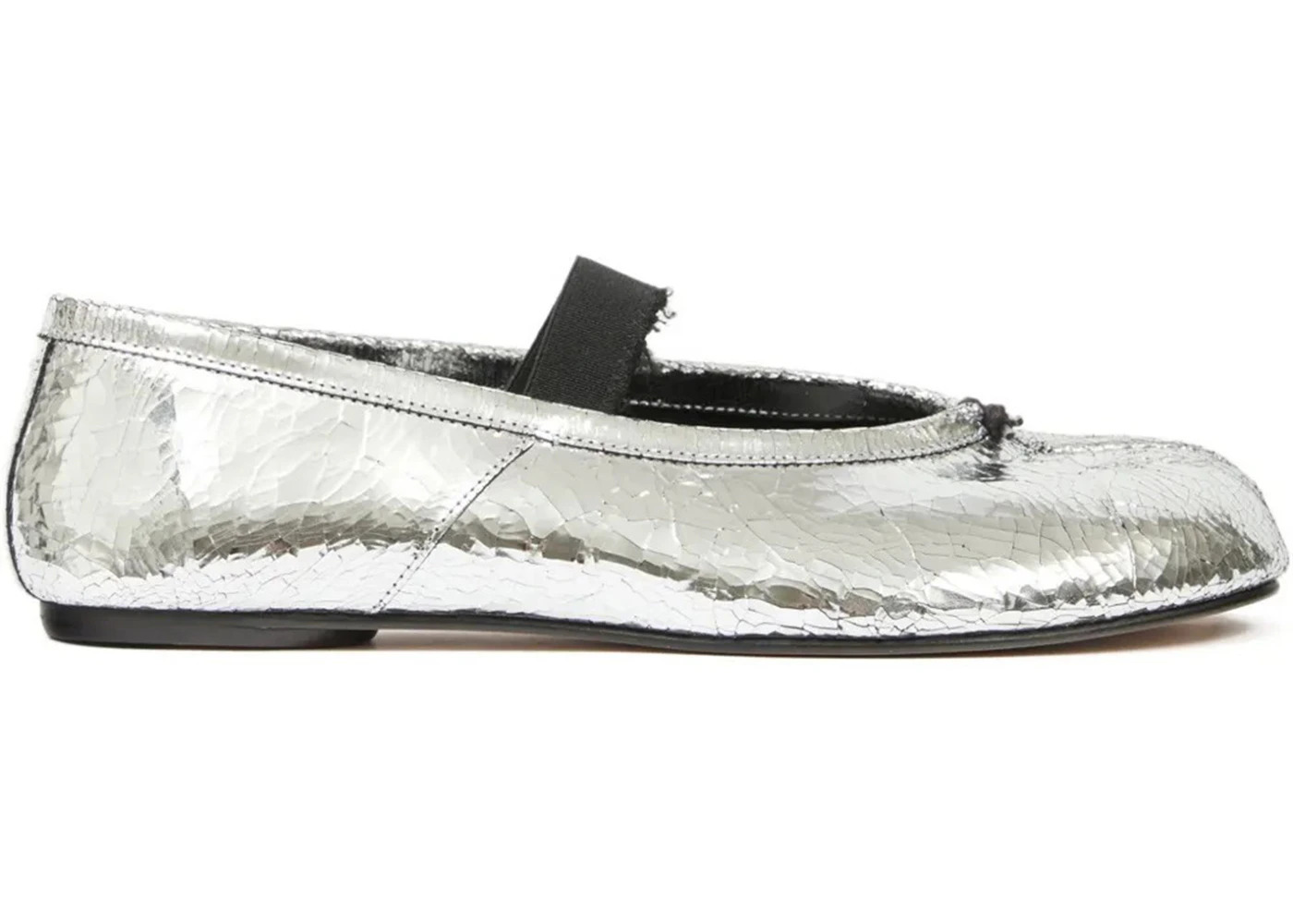 Maison Margiela Tabi Ballerina Flat Elastic Band Textured Silver Black (Women's)