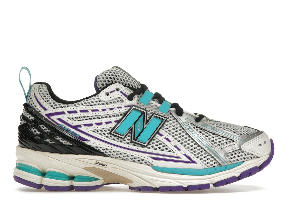 The New Balance 1906R Charlotte Hornets adds a colorway of aqua, purple, and black with metallic silver details to honor the Charlotte Hornets. The Charlotte Hornets New Balance 1906R, a technical running shoe, features the 1906R’s typical clear aesthetic with a breathable, open-hole mesh upper in off-white and supportive synthetic leather overlays. Aqua adds pops of color on the heel pull tab, the eyelet lace loops, sections of the midsole, the New Balance ‘N,’ and the 1906R lettering. The sneaker also features purple details on the overlays and the outsole. Finding inspiration in New Balance’s highly technical heritage, this sneaker incorporates elements found in the 2002R and the second version of the 860. Despite the sneaker’s themed color accents, it remains a function-first shoe with ABZORB SBS pods in the heel, ACTEVA LITE cushioning, and N-ergy gel. The New Balance 1906R Charlotte Hornets was released on August 5, 2023, and retailed at $155. - Style M1906RCF - Colorway Off-White/Aqua/Purple/Black - Retail Price 155 - Release Date 2023-08-05 - Featured false - Uploaded By MM