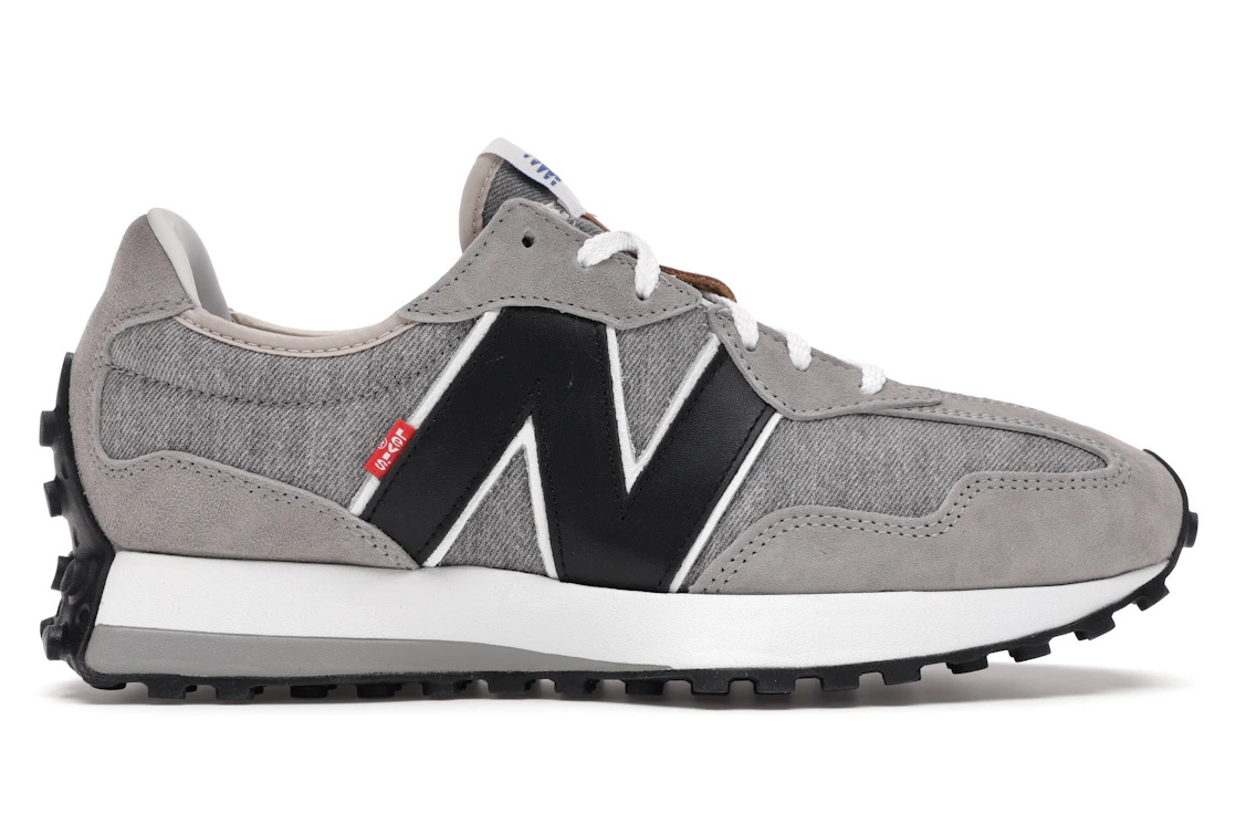 The New Balance 327 Levi's Grey is a collaborative sneaker from the Levi's x New Balance 327 collection. Dressed in a Grey/Black color scheme, this sneaker features an upper made of a Grey denim base with tonal suede overlays. An oversized ‘N’ logo made of Black leather with white outlines and a Red Levi’s tab highlights the upper lateral. The medial features a White denim base with Grey suede overlays and ‘new balance’ branding etched on the heel. A White foam midsole rests on a Black studded rubber outsole. The New Balance 327 Levi's Grey was released on 9th November 2020, retailing at $130. - Style MS327LVB - Colorway Grey/Black - Retail Price 130 - Release Date 2020-11-09 - Featured false