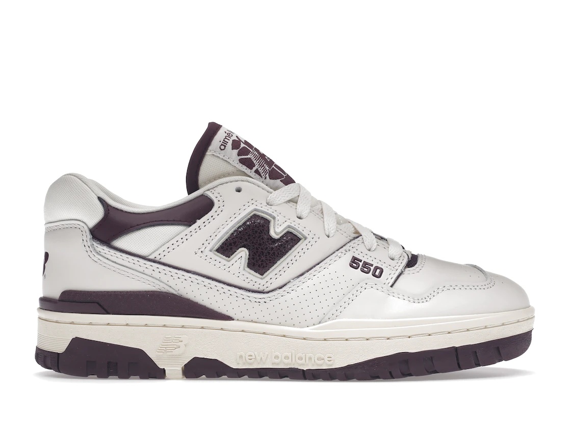 The New Balance 550 Aime Leon Dore Purple falls under the category of fashion and athletic sneakers. This 550 New Balance by Aime Leon Dore in Purple is dressed in an elementary two-tone color scheme that features vintage-inspired details. The low-top features a violet-colored "N" emblem in cracked leather and a white leather upper with a microperforated midfoot overlay. The left and right heels each have mismatched NB and ALD branding. A classic rubber cupsole with worn sidewalls and an exposed EVA wedge on the medial side finishes the design of this sneaker. The New Balance 550 Aime Leon Dore Purple was released on the 21st of May, 2022, at a retail price of $130. - Style BB550AR1 - Colorway White/Purple - Retail Price 130 - Release Date 2022-06-21 - Featured false