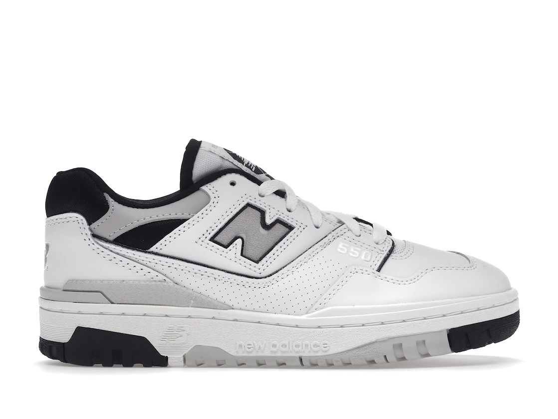 The New Balance 550 White Black Grey W version of the 550 has an upper made of smooth, perforated leather, plush suede, and breathable fabric. This women’s sneaker is dressed in dotted and smooth white leather with tonal "N" logos on either side. On the collar and forefoot, respectively, there are overlays made of black leather and suede. The black suede heel overlay sports the classic "NB" logo and the forefoot features subtle "550" accents. The tongue tag's "New Balance 550" emblem, which is modeled after an old-school insignia, adds to the shoe's retro feel. The large white rubber midsole and the grey and black outsole complete the sneaker's appearance. The New Balance 550 White Black Grey W was released on 17th August 2022 and retailed at $110. - Style BBW550JB - Colorway White/Black/Grey - Retail Price 110 - Release Date 2022-08-17 - Featured false
