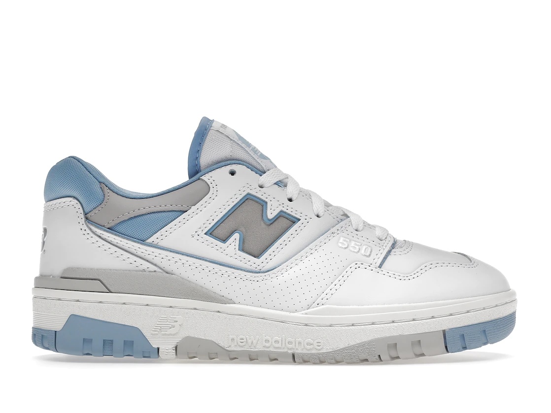 The New Balance 550 White University Blue (W) is a women’s offering of the New Balance 550 in a White/University Blue colorway. This sneaker features a smooth and perforated White leather upper accented by Light Grey on the ‘N’ logo, ankle collar, heel branding, and the TPU build on the heel. Hits of University Blue appear on the heel pull tab, collar, tongue, and the outline of the ‘N’ logo. The ‘550’ branding appears on the lower eyelets in tonal White embroidery. The upper rests on a White midsole and a Light Grey/University Blue outsole. The New Balance 550 White University Blue (W) was released on August 25th, 2022, retailing at $110. - Style BBW550JC - Colorway White/University Blue/Grey - Retail Price 110 - Release Date 2022-08-25 - Featured false