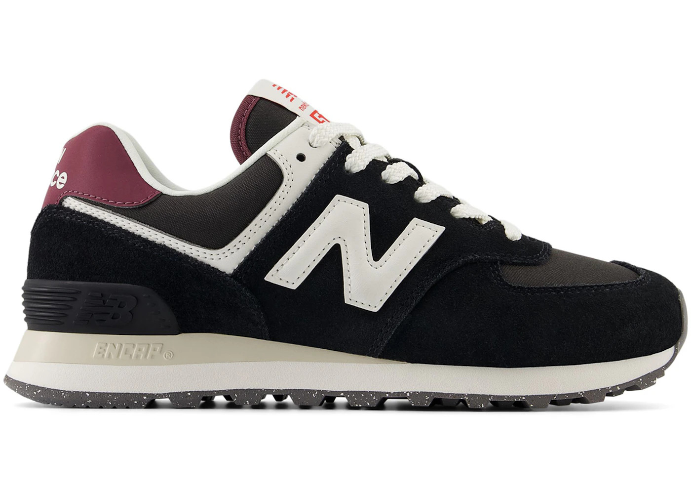 New Balance 574 Black White Burgundy (Women's)