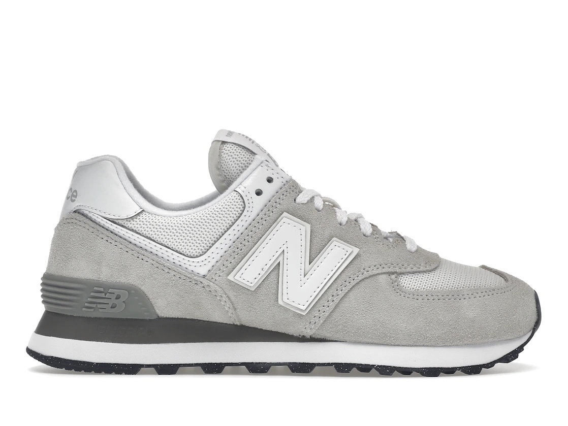 The New Balance 574 Nimbus Cloud White (W) comes in a color palette that is somewhat lighter in hue than the brand's grey color scheme crafted in suede and mesh materials inspired by its predecessor. The heel stabilizer and sole have been dyed monochromatically in white and dark grey. The model is covered in a faded grey. Other features include reflective "N" emblems on the side, woven labels with their customary branding, and a black typeface "New Balance" at the heel tab. Additional brandings include the NB logo and "574" text on its padded tongue. The women's iteration of the New Balance 574 Nimbus Cloud White (W) was released on 16th March 2022 and retailed at $85. - Style WL574EVW - Colorway Nimbus Cloud/White - Retail Price 85 - Release Date 2022-03-16 - Featured false