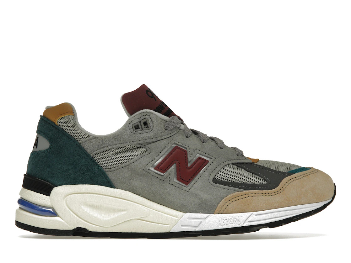 New Balance 990v2 Grey Green Maroon